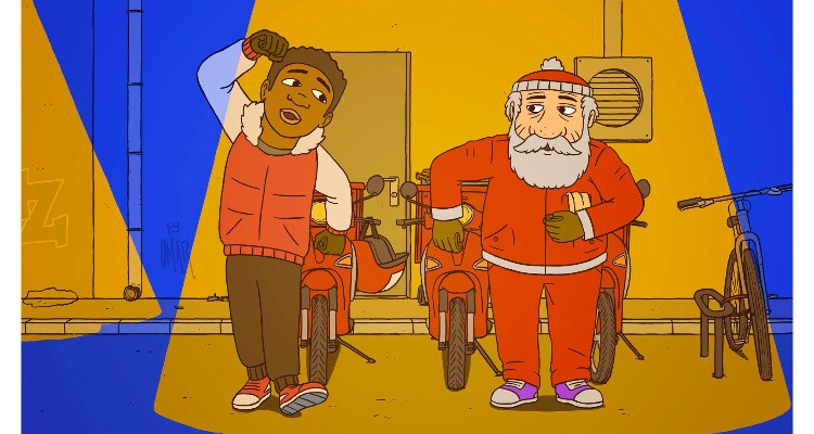 On the eve of December 24th, somewhere in a dull and gloomy suburb, young Abdou, a dreamy pizza delivery boy, meets Marcel, the real Father Christmas. Marcel is tired, worn out and waiting for retirement but that evening a silly scooter accident jeopardizes his delivery rounds. However, thanks to Abdou, who enlists the help of some unusual characters from his neighborhood, the Christmas deliveries go ahead as planned. “Marcel, Father Christmas (and the little pizza delivery boy)” is a beautiful story of friendship where myths and reality, laughter and tears collide against a backdrop of tenderness. Amidst the chaos, Christmas is saved through the power of music and songs, sledge, and scooter!