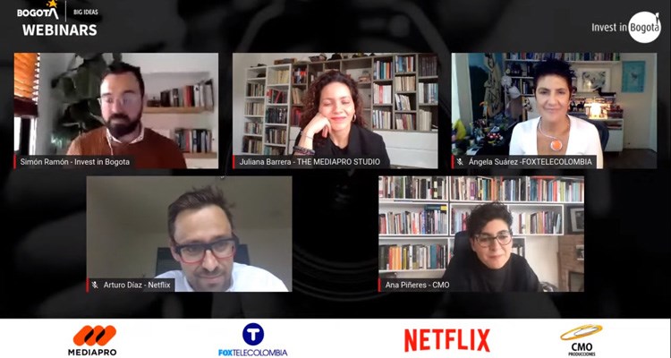 Invest in Bogotá, la agencia de promoción e inversión extranjera en Colombia, ofreció un webinar sobre el futuro del contenido audiovisual, donde participó Netflix junto las productoras locales The Mediapro Studio, FoxTelecolombia y CMO Producciones, quienes describieron este momento como una ‘oportunidad para la reinvención’.Moderado por Simón Ramón, gerente de inversión en industrias creativas en Invest in Bogotá, el encuentro virtual contó con Arturo Díaz, director de originales internacionales para Netflix, Ana Piñeres, VP y productora ejecutiva en CMO Producciones; Juliana Barrera, directora de contenido para The Mediapro Studio, y Ángela Suárez, VP de contenido original en FoxTelecolombia.
