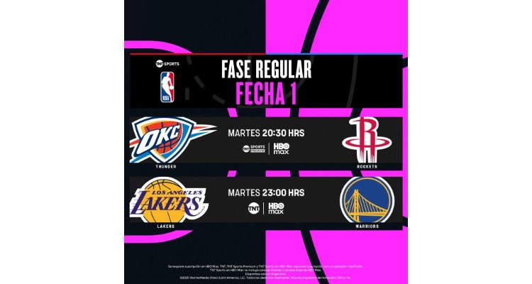 La cobertura iniciará con el Tip Off, que constará de dos juegos: El vigente campeón, Oklahoma City Thunder vs. Houston Rockets, con el estreno de Kevin Durant y en el segundo turno, el duelo estelar de Los Angeles Lakers vs. Golden State Warriors protagonizado por Luka Doncic frente a Steph Curry y compañía.