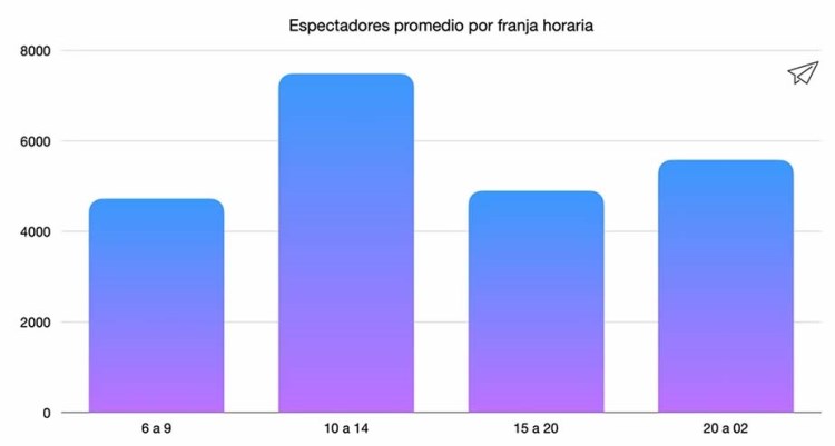 El estudio indicó que el pico de encendido se produce entre las 10:00 am y las 2:00 pm, cuando el promedio general de espectadores simultáneos alcanza su punto máximo. Esta franja horaria combina géneros como el entretenimiento, informativos y programas de alto impacto, lo que contribuye a una audiencia amplia.