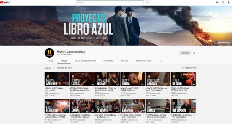 History Latinoamérica: Supera los 2 millones de usuarios en Youtube