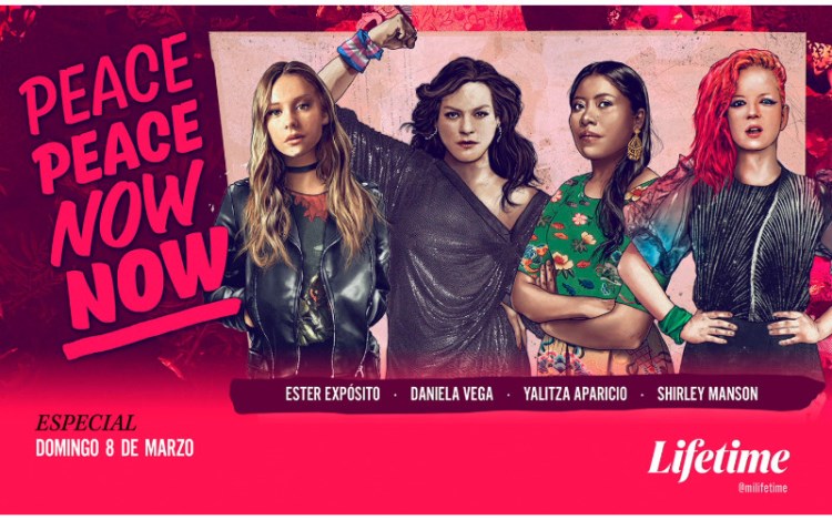 La producción, que consta de cuatro episodios grabados en Chile, Colombia, Guatemala y México, cuenta con la conducción de Daniela Vega, Yalitza Aparicio, Shirley Manson y Ester Expósito. El estreno está programado para el domingo 8 de marzo, en coincidencia con el Día Internacional de la Mujer.La señal de televisión paga Lifetime presentó la miniserie documental Peace Peace Now Now, una obra que recopila testimonios de mujeres que sobrevivieron a conflictos armados y situaciones de violencia estructural en Latinoamérica. La producción utiliza un formato narrativo donde figuras del cine y la música introducen relatos de resistencia y procesos de búsqueda de justicia en la región.