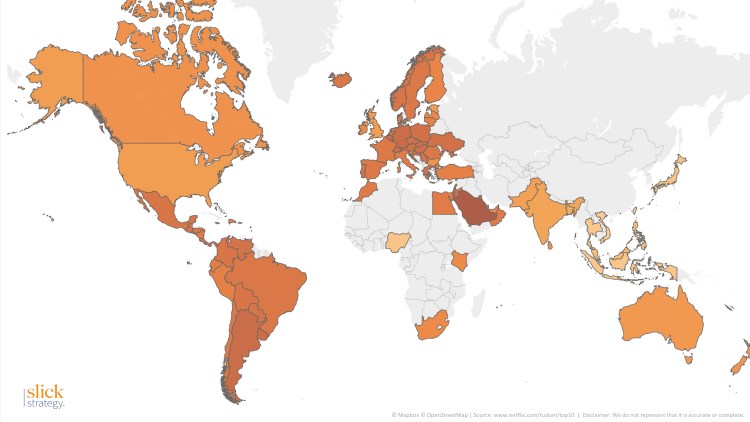 El mapa de calor de popularidad de la serie muestra también un fuerte desempeño en Arabia Saudita, seguido por Ucrania, donde la serie se mantuvo en el Top 10 durante 10 semanas, la mayor cantidad de semana en todos los países mencionados. En tanto, Argentina y Alemania también mostraron gran interés, con Alemania ubicándose en el cuarto lugar entre 92 países donde la serie fue lo más visto.